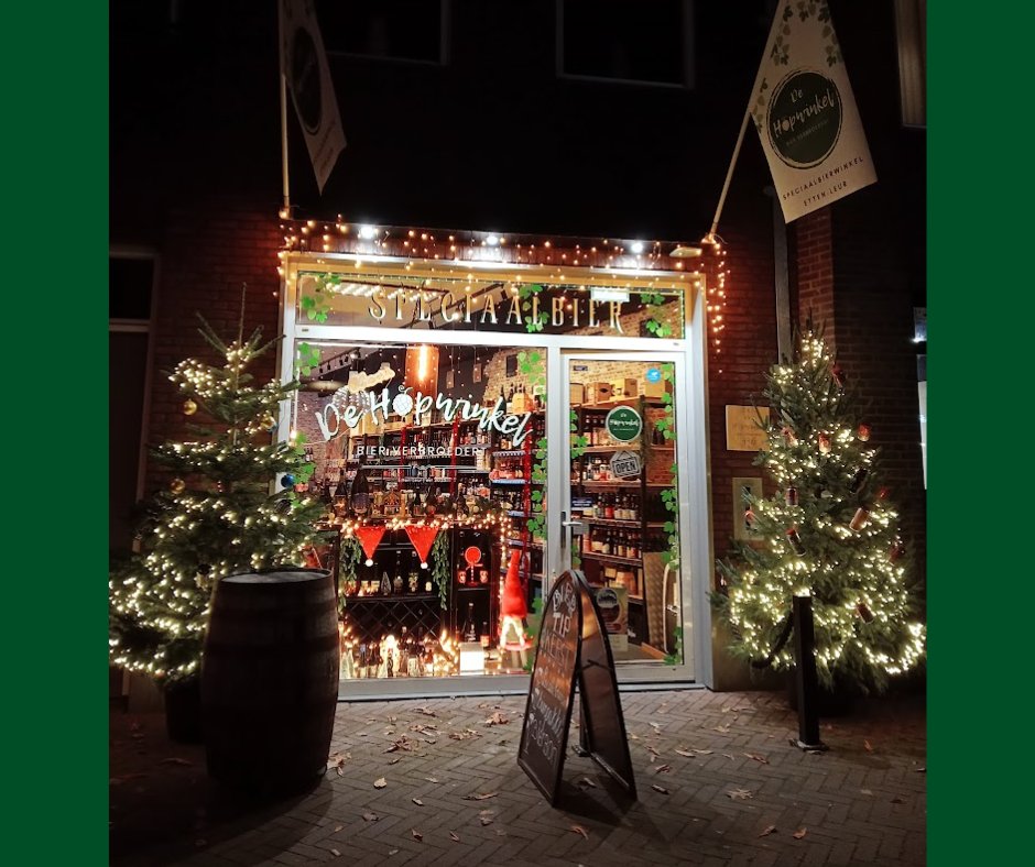 Loop even binnen in onze gezellige, ruime speciaalbierwinkel, waar je naast een enorm assortiment bieren ook mooie kerst-bierpakketjes, leuke biergadgets en lokale bieren vindt.