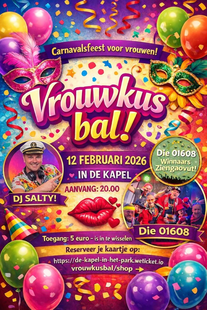 - Donderdag 12 februari: Vrouwkusbal met Die01608 en DJ Salty, vanaf 20.00 uur. Tickets>>