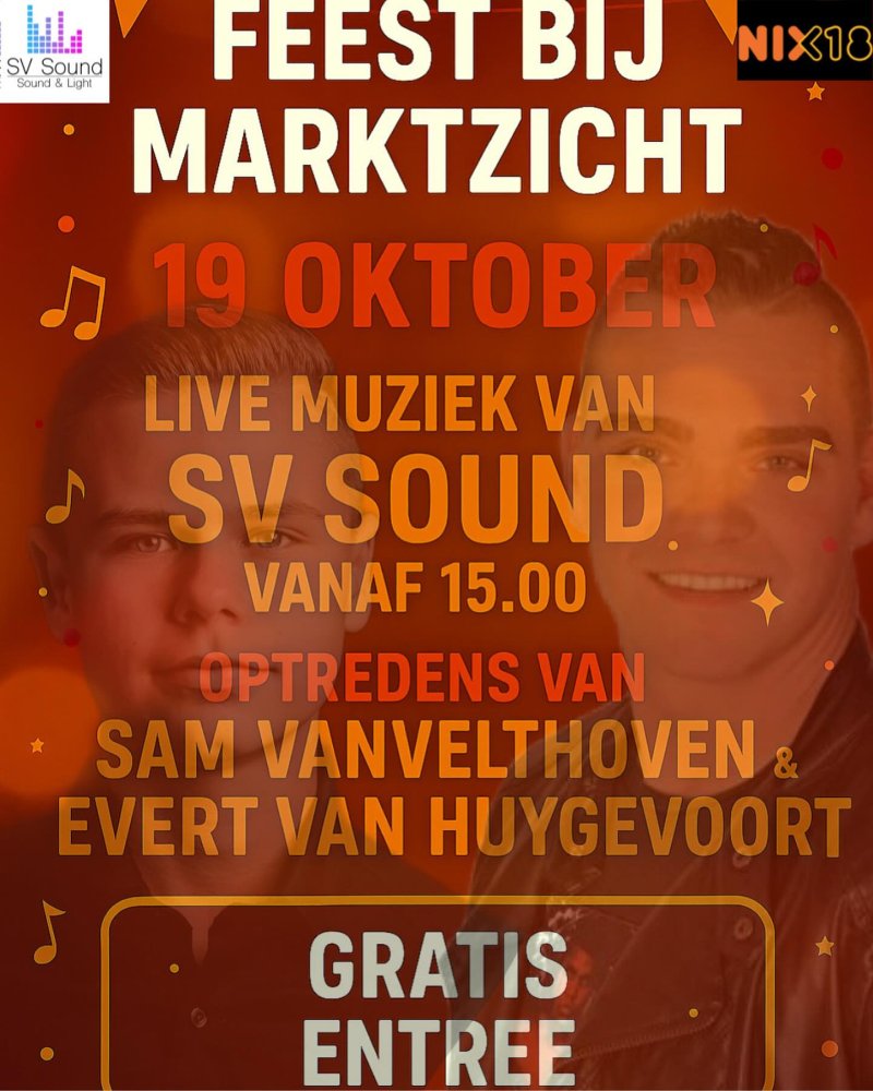 Op 19 oktober vanaf 15:00 uur zorgen sv sound & light , Sam van Velthoven en Evert van Huygevoort voor muziek, sfeer en een volle dansvloer.