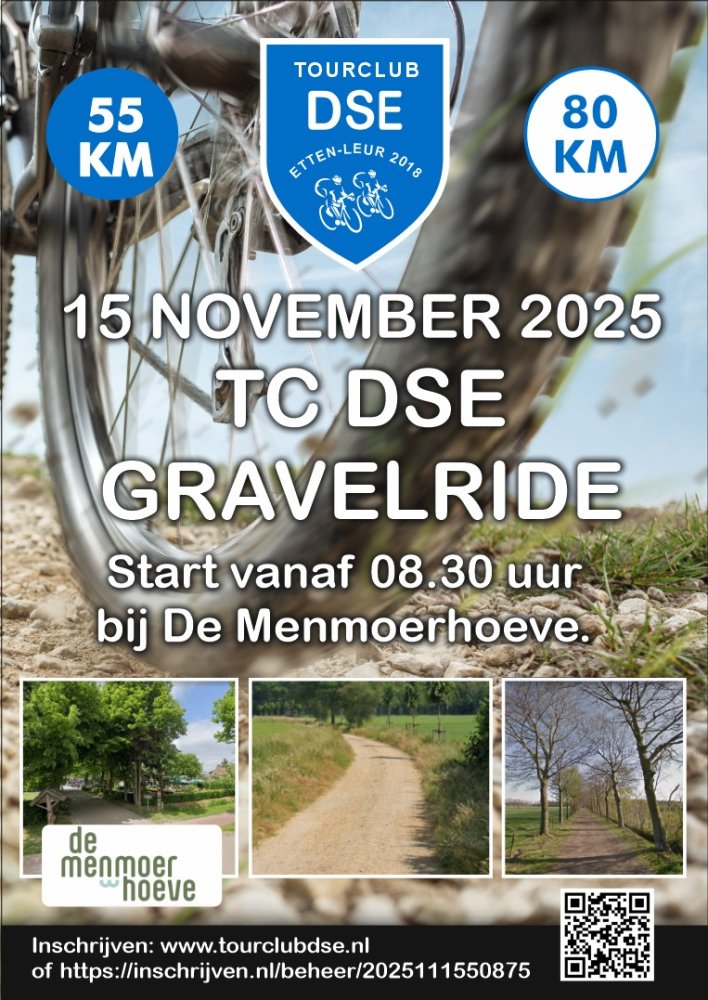 Na het succes van de tweede TC DSE gravelride organiseert de tourclub op zaterdag 15 november 2025 de derde editie van de TC DSE gravelride door het prachtige Brabantse landschap. Vernieuwde routes, uiteraard weer voor een groot gedeelte off-road met uitdagende gravelpaden.
