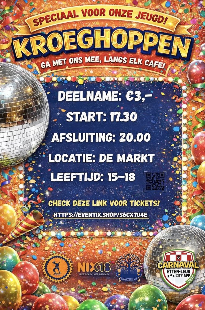 Kroeghoppen is terug! Na de succesvolle eerste editie van afgelopen jaar komt er dit jaar een vervolg. Op vrijdag 13 februari trekken jongeren tijdens een feestelijke tocht langs verschillende kroegen in het Stijlorenrijk. Gezelligheid staat centraal, maar dan zonder alcohol. Het evenement is speciaal bedoeld voor 15-, 16- en 17‑jarigen.