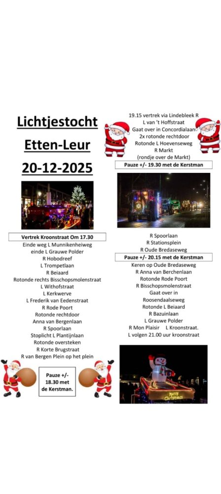 Zaterdag 20 december voert er weer een prachtig verlichte optocht door Etten-Leur. Read more