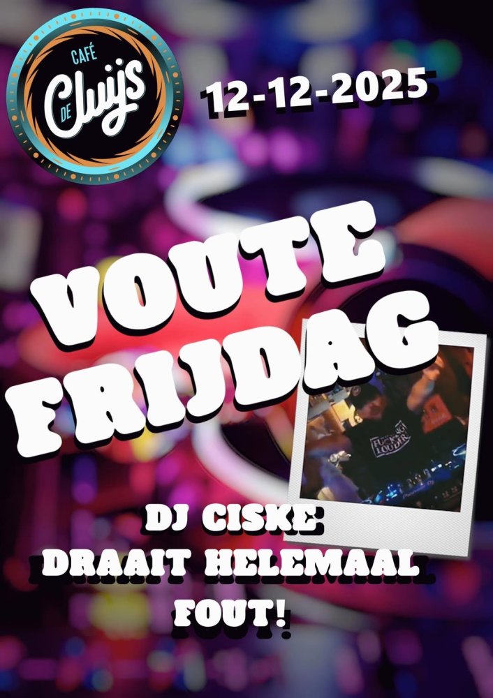 Vrijdagavond: Voute Frijdag party met dj Ciske bij café De Cluijs op de markt in Etten-Leur.