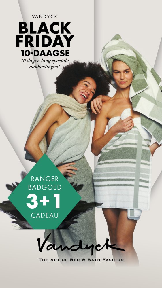 3 + 1 cadeau! Op geselecteerde items uit de Vandyck Boston, Ontario en Vancouver Badgoed collectie. Eén van ‘s werelds grootste en uitgebreidste collecties badgoed gemaakt van 100% Amerikaans katoen. Dit badgoed kenmerkt zich door de uitzonderlijk hoge absorptievermogen!