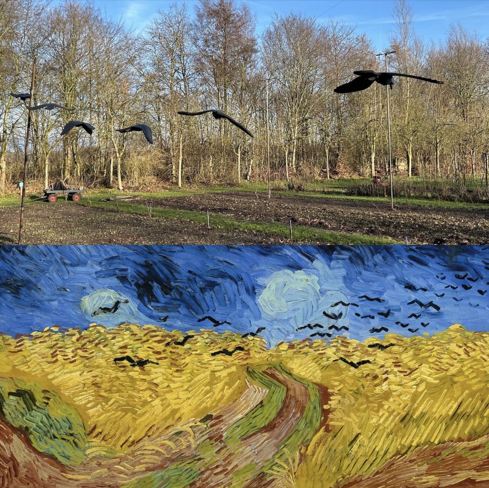 Dit bracht ons op het idee om boven het korenveld een aantal kraaien te laten vliegen. Geen echte natuurlijk, maar wel net echt. Het resultaat is verbluffend. Kom maar eens kijken.